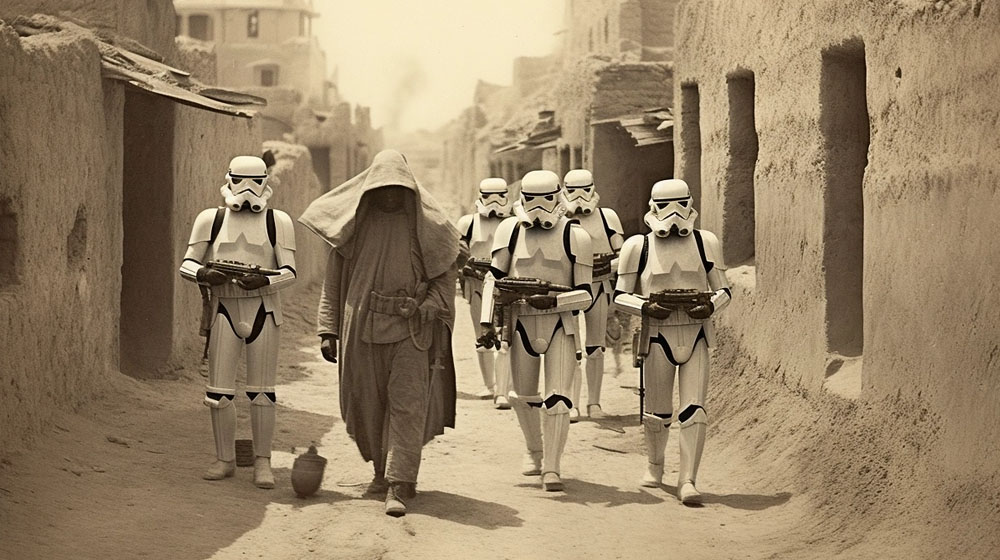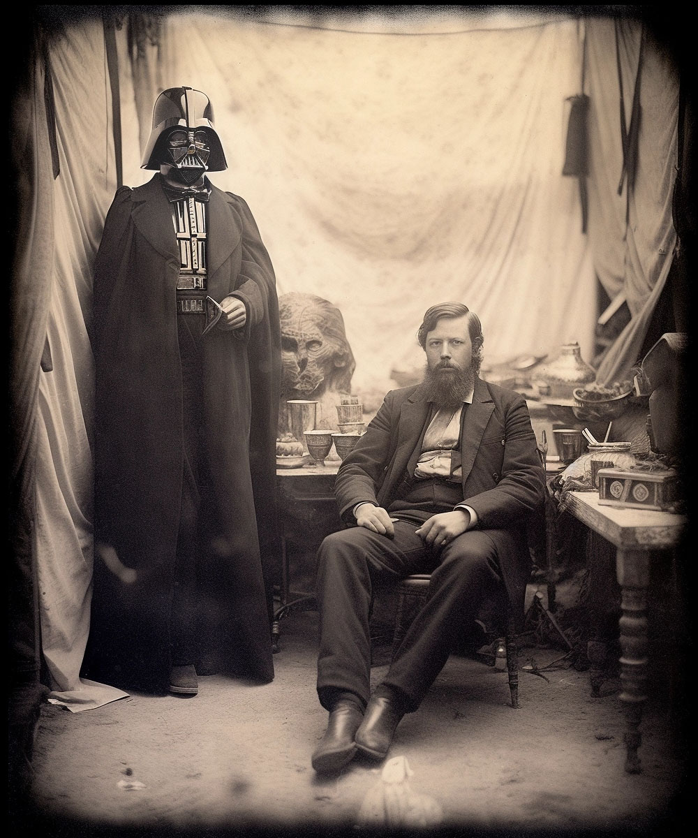 Old photos from the 19th century shows us that Stormtroopers came to earth to explore certain continents in order to prospect for the possibilities of extracting minerals. Imperial soldiers followed a couple of years later. Darth Vader joined them twice in 1889 and 1903 of the Terran era for short stays of only a few months.